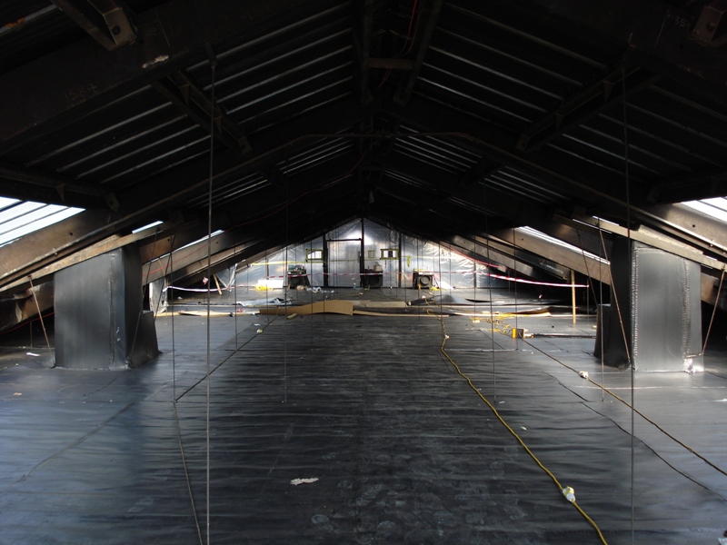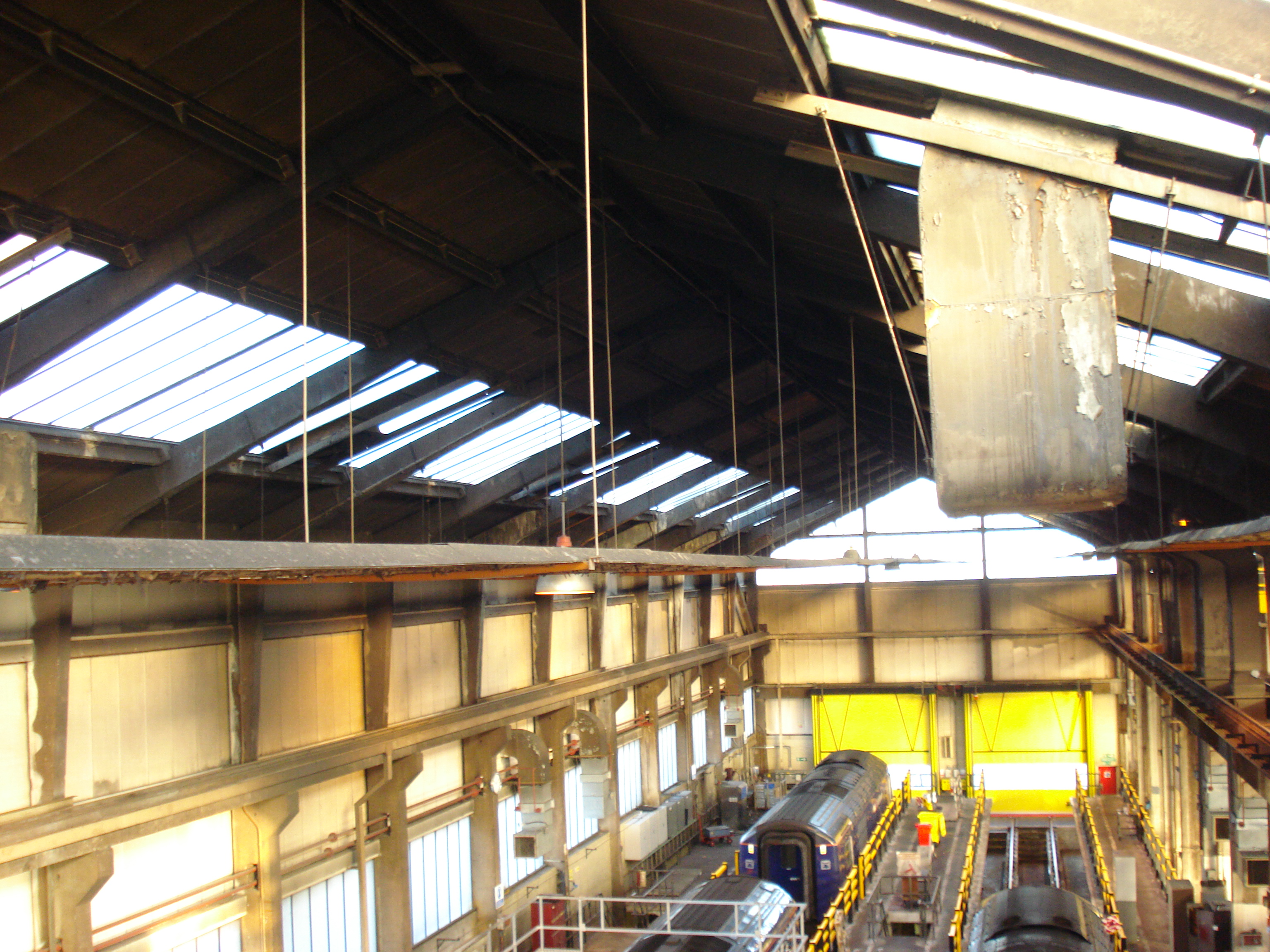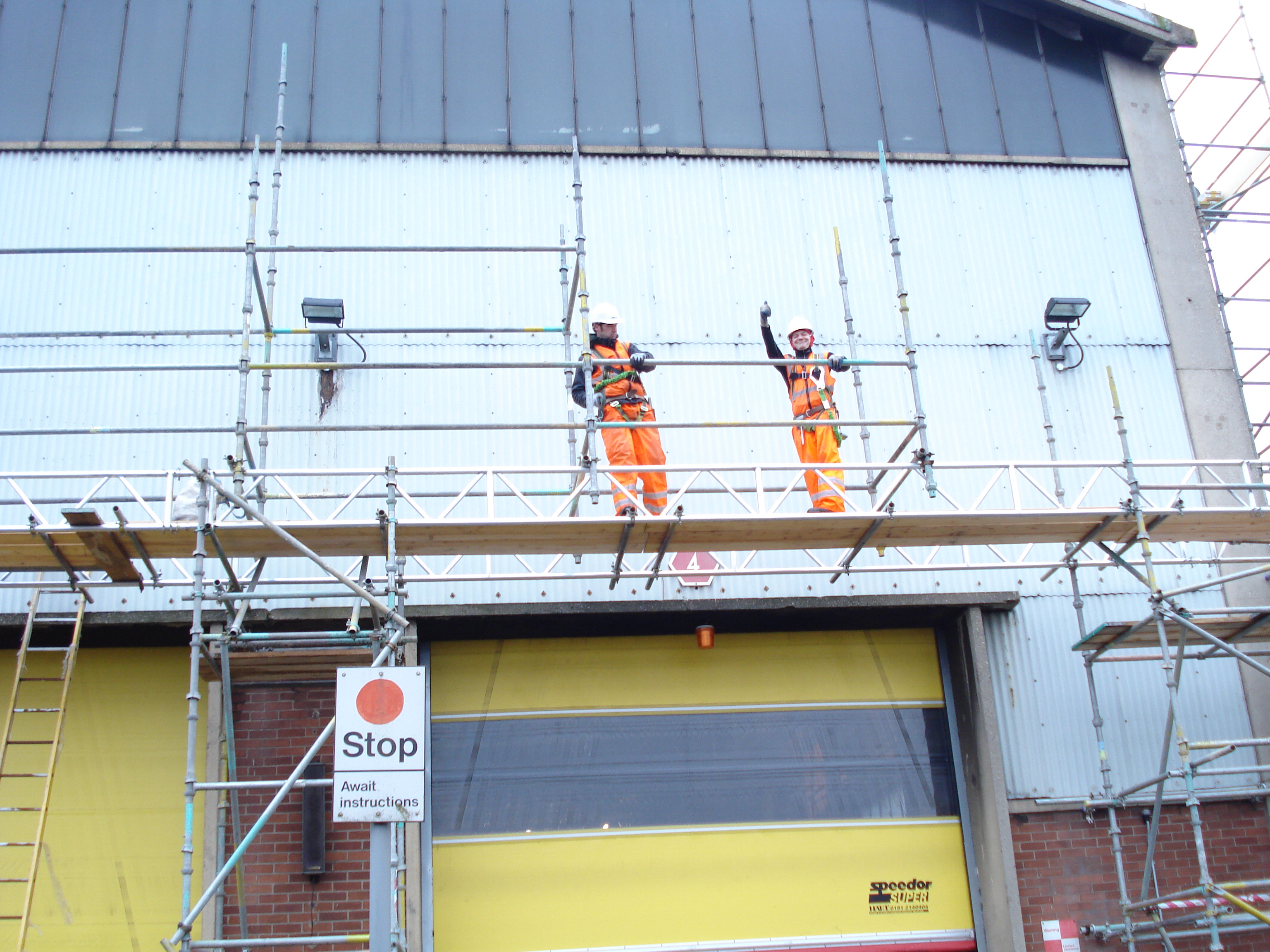 TR Scaffolding were awarded the contract to provide external and internal access to facilitate the works. The internal installation comprised of a 66 metre long x 30m wide crash deck situated 10m above the ground. The deck was formed with a 5 degree slope, a water proof membrane and a guttering system to fully weather protect the valuable trains and maintenance equipment below. A external scaffold surrounding the perimeter of the building which measured in total 200m long x 10m high provided the necessary safe edge protection to compliment the internal scaffold. The entire project was installed within 5 weeks with teams working shifts around the clock.